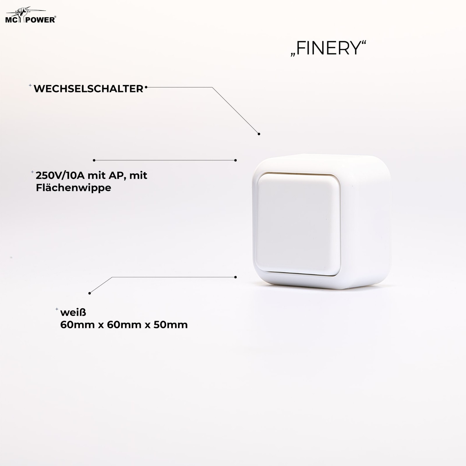 Aufputz Wechselschalter McPower "Finery" 250V/10A weiß Technische Details:... mehr