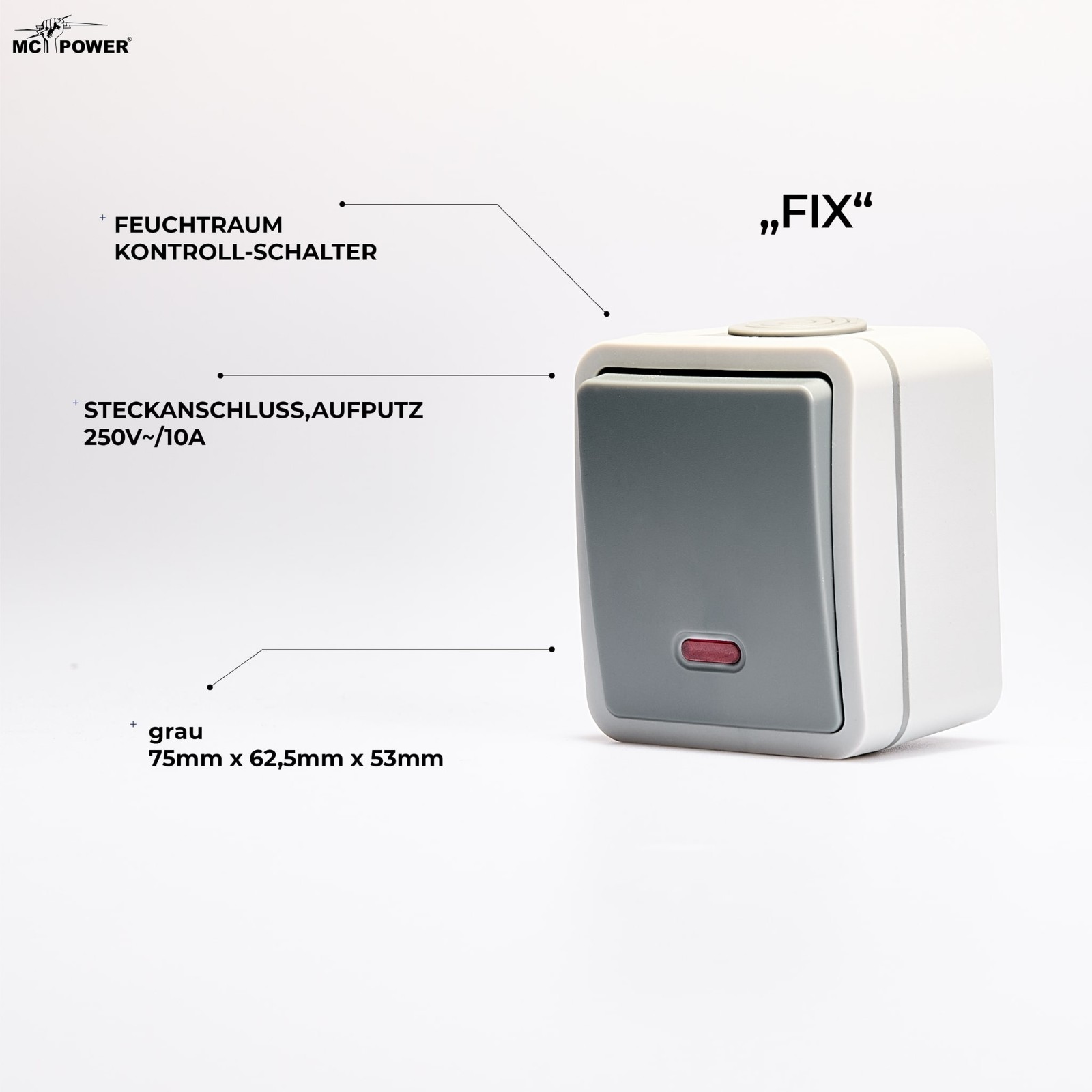 Produktinformationen "Feuchtraum Kontroll-Schalter 250V~/10A McPower "Fix" Steckanschluss IP54 AP"