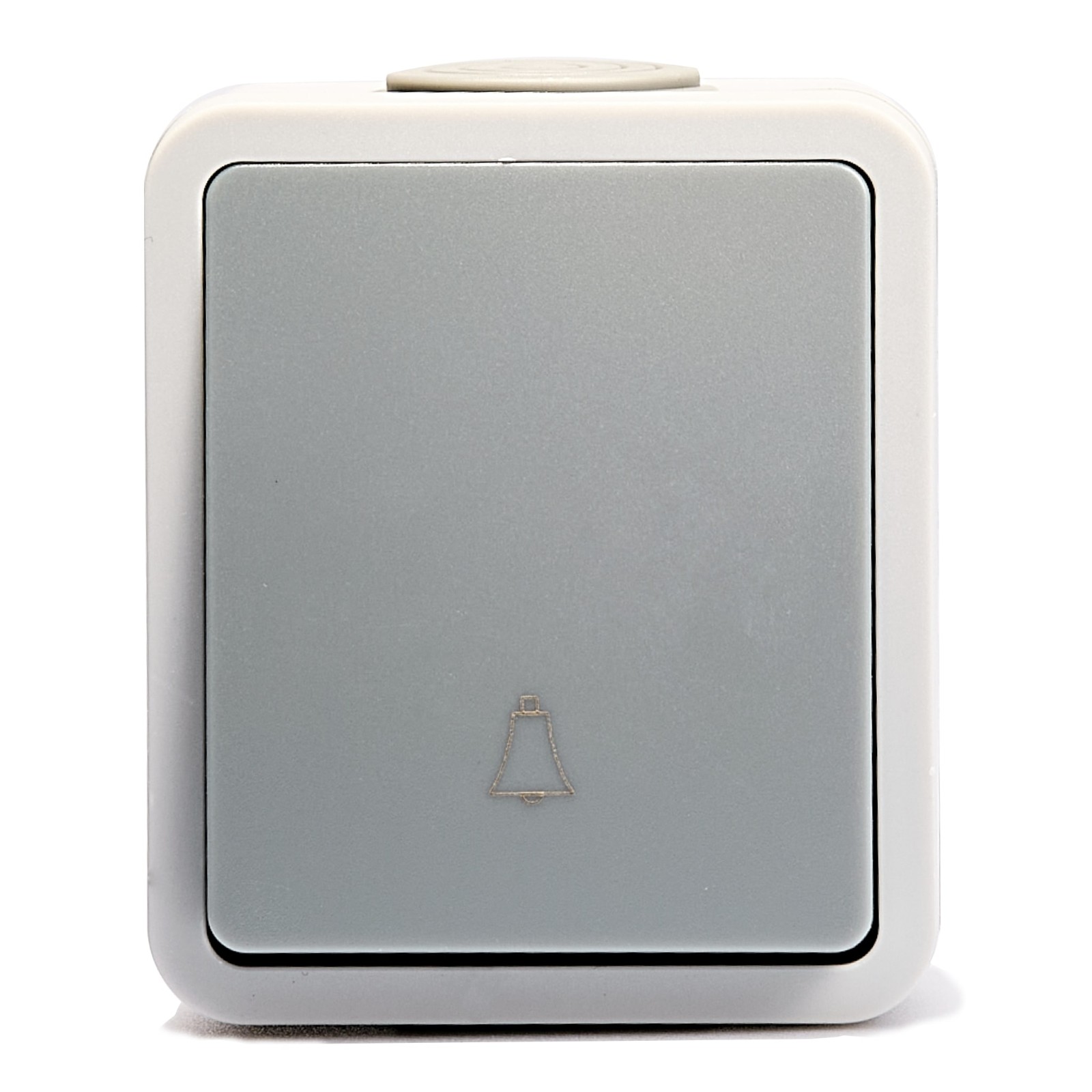- spritzwassergeschützter Aufputz Taster mit Klingel-Symbol