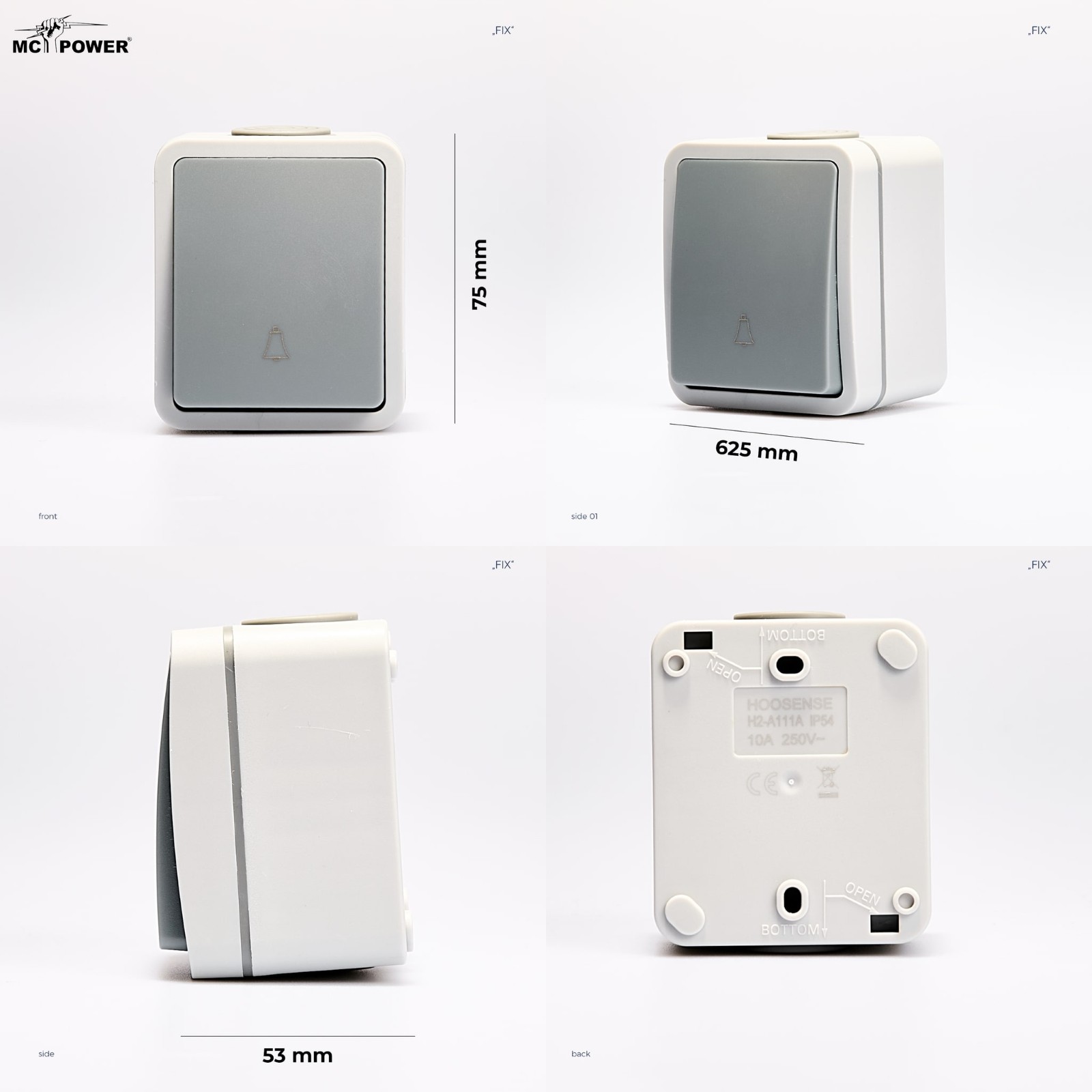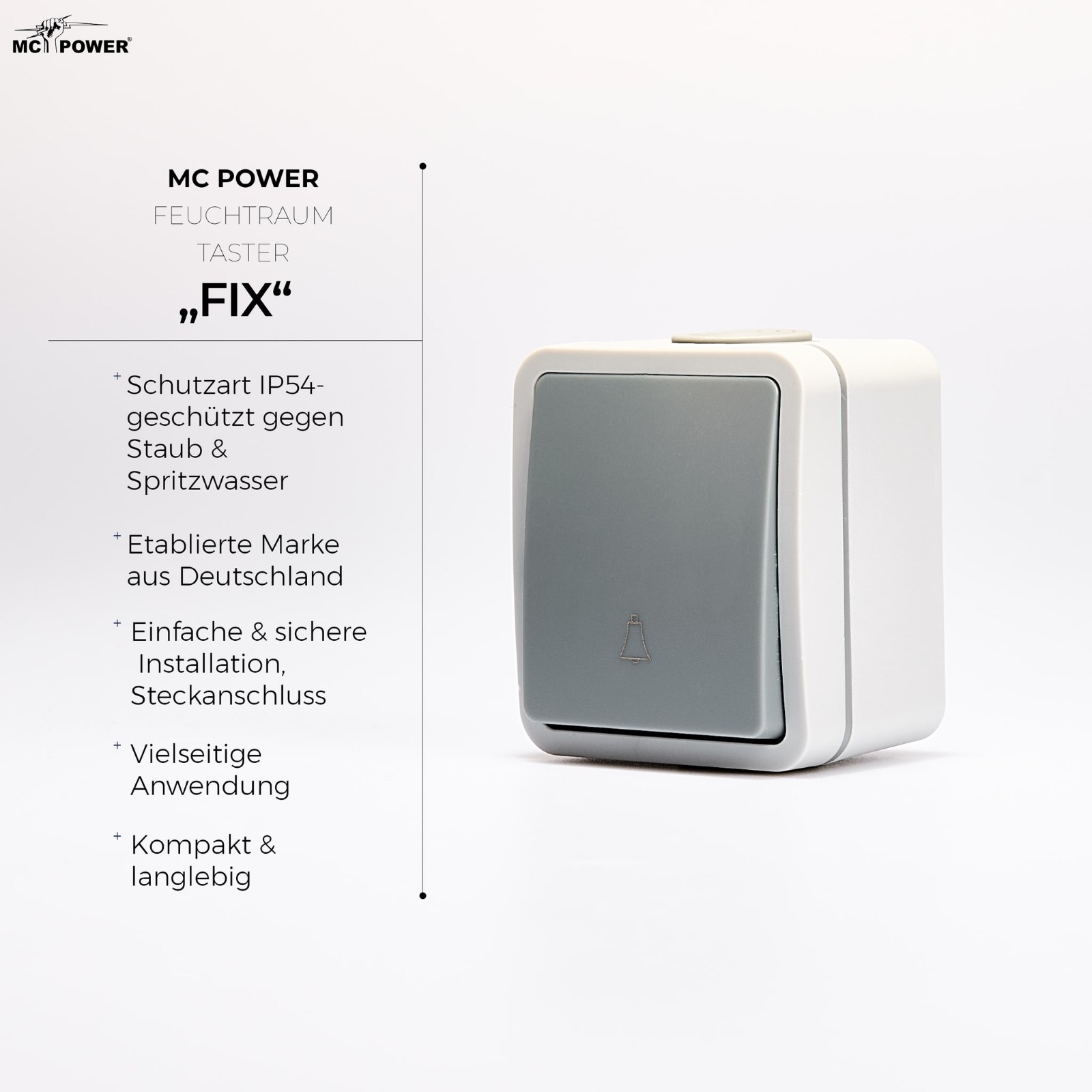 Produktinformationen "Feuchtraum Taster mit Klingel-Symbol 250V~/10A McPower "Fix" Steckanschluss IP54 AP"