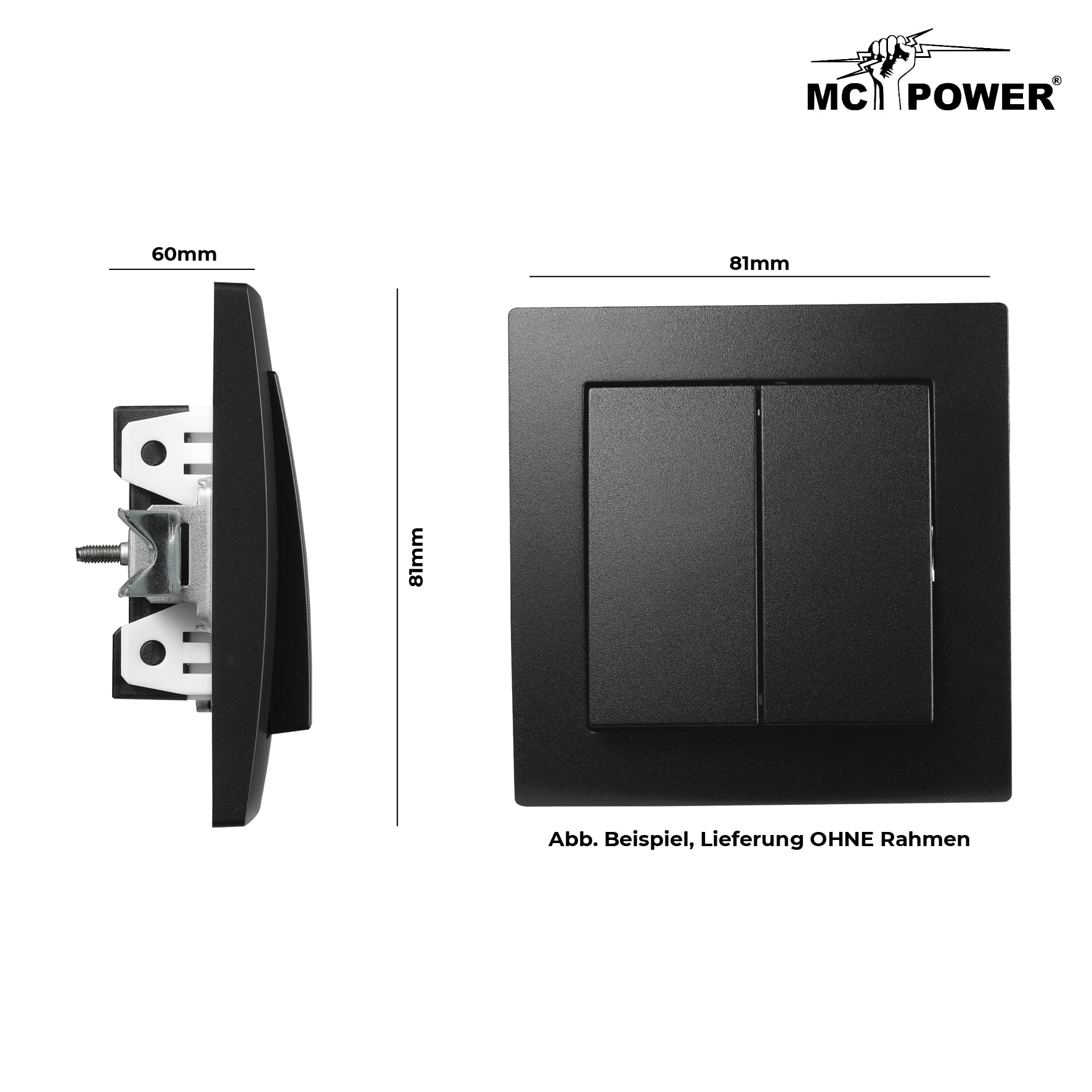 2-fach Serien-Schalter McPower "Flair" 250V~/10A UP Schraubanschluss matt schwarz