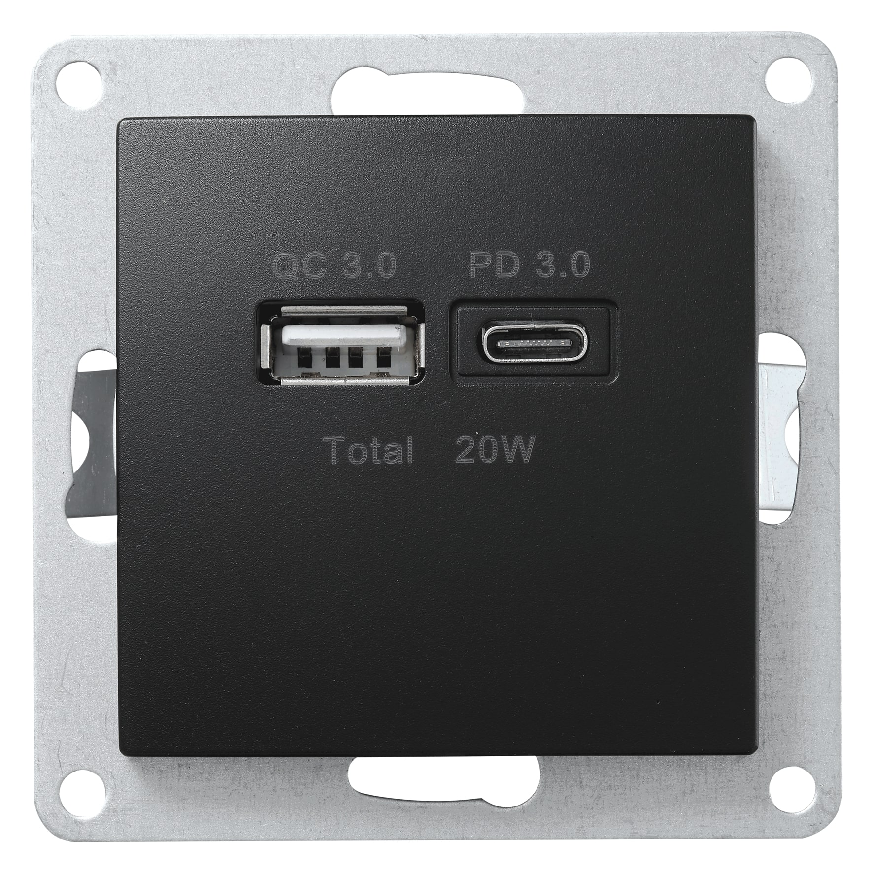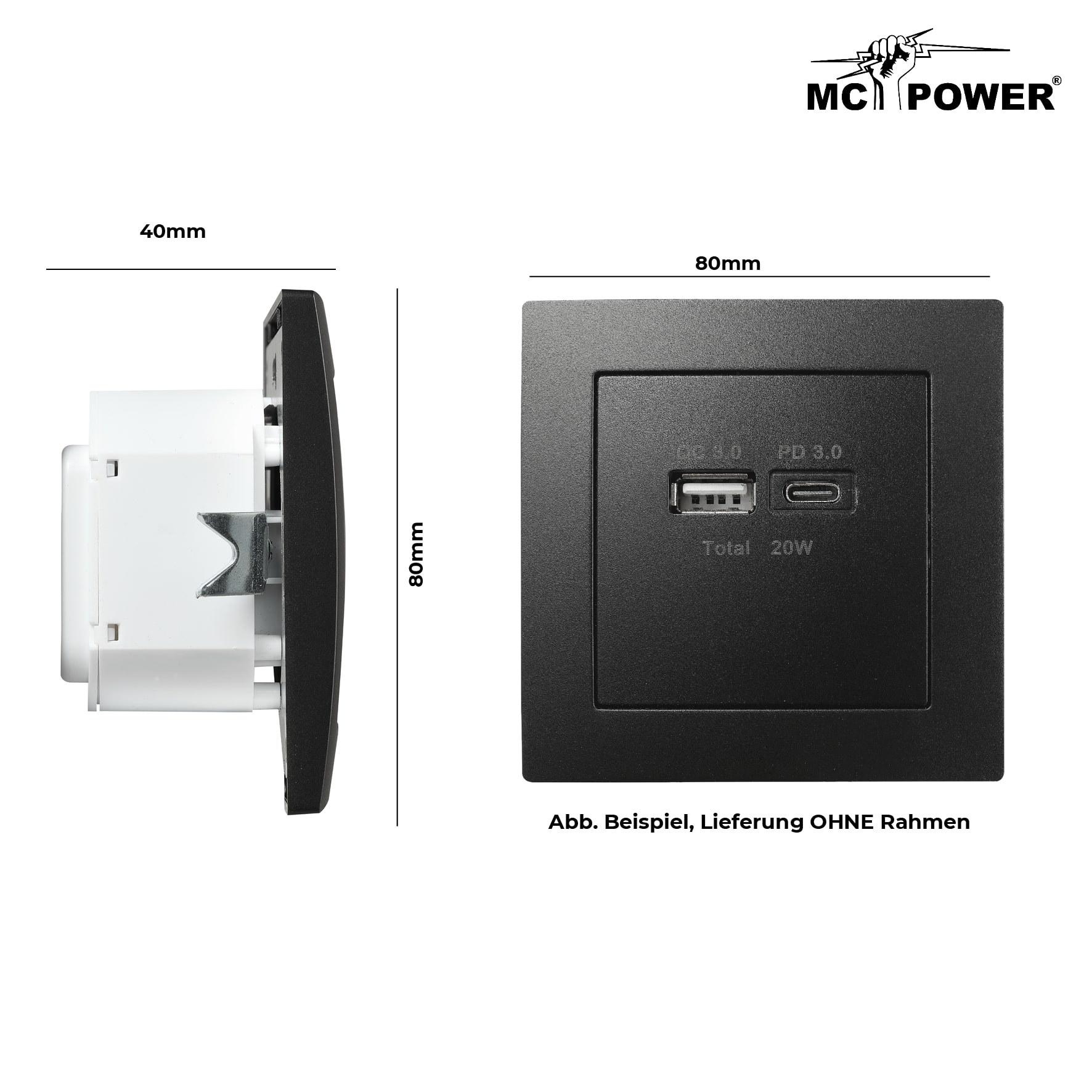 2-fach USB-Ladedose McPower "Flair" UP matt schwarz 1x USB-A + 1x USB-C PD 3.0 Ladebuchse