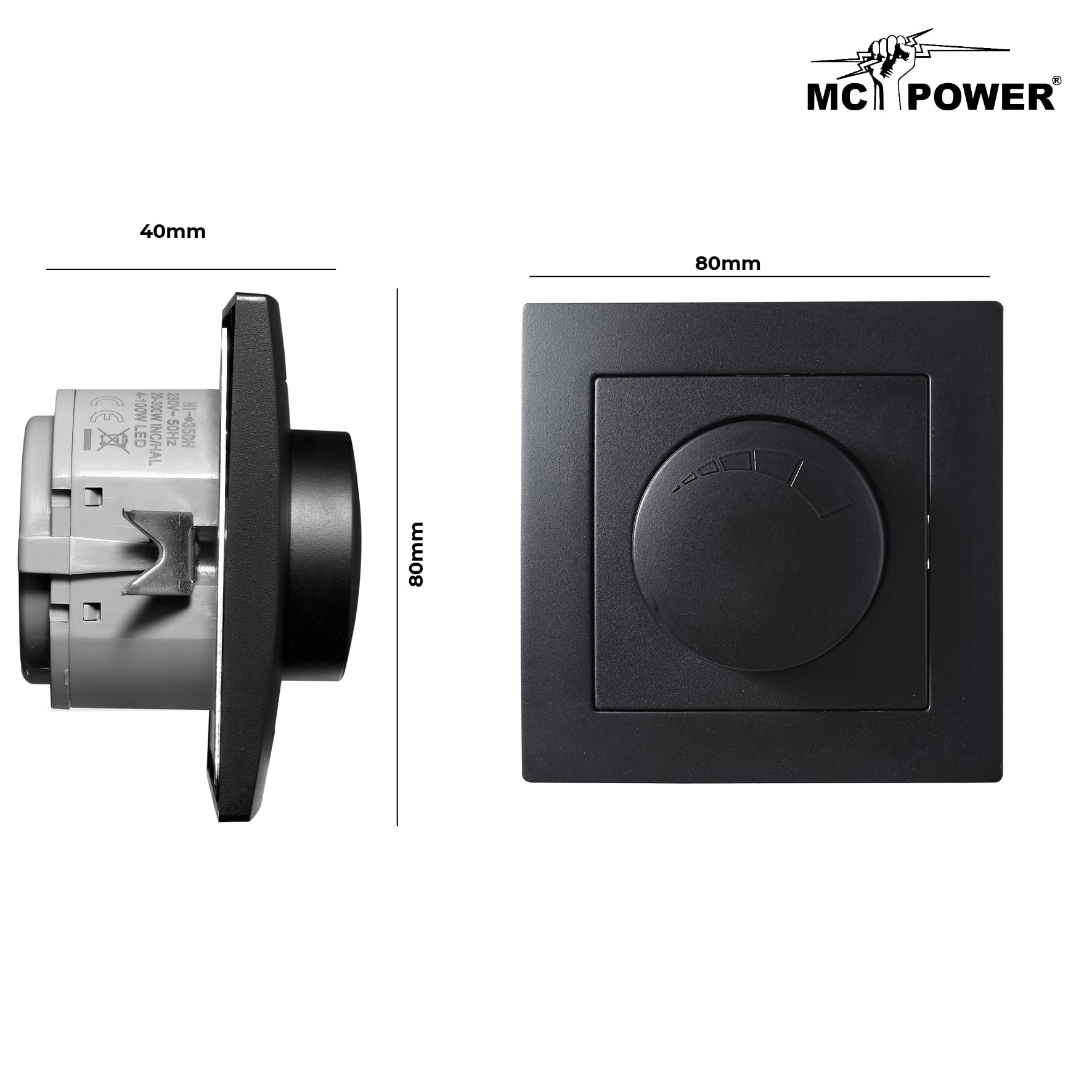 Produktinformationen "LED-Dimmer für elektronische Trafos McPower "Flair" 250V/300W Memory-Funktion UP matt schwarz"